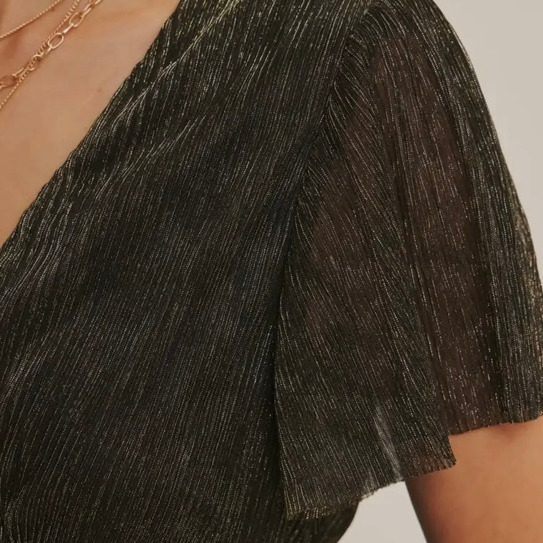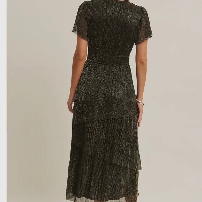 Black Metalic Ruffle Midi Dress