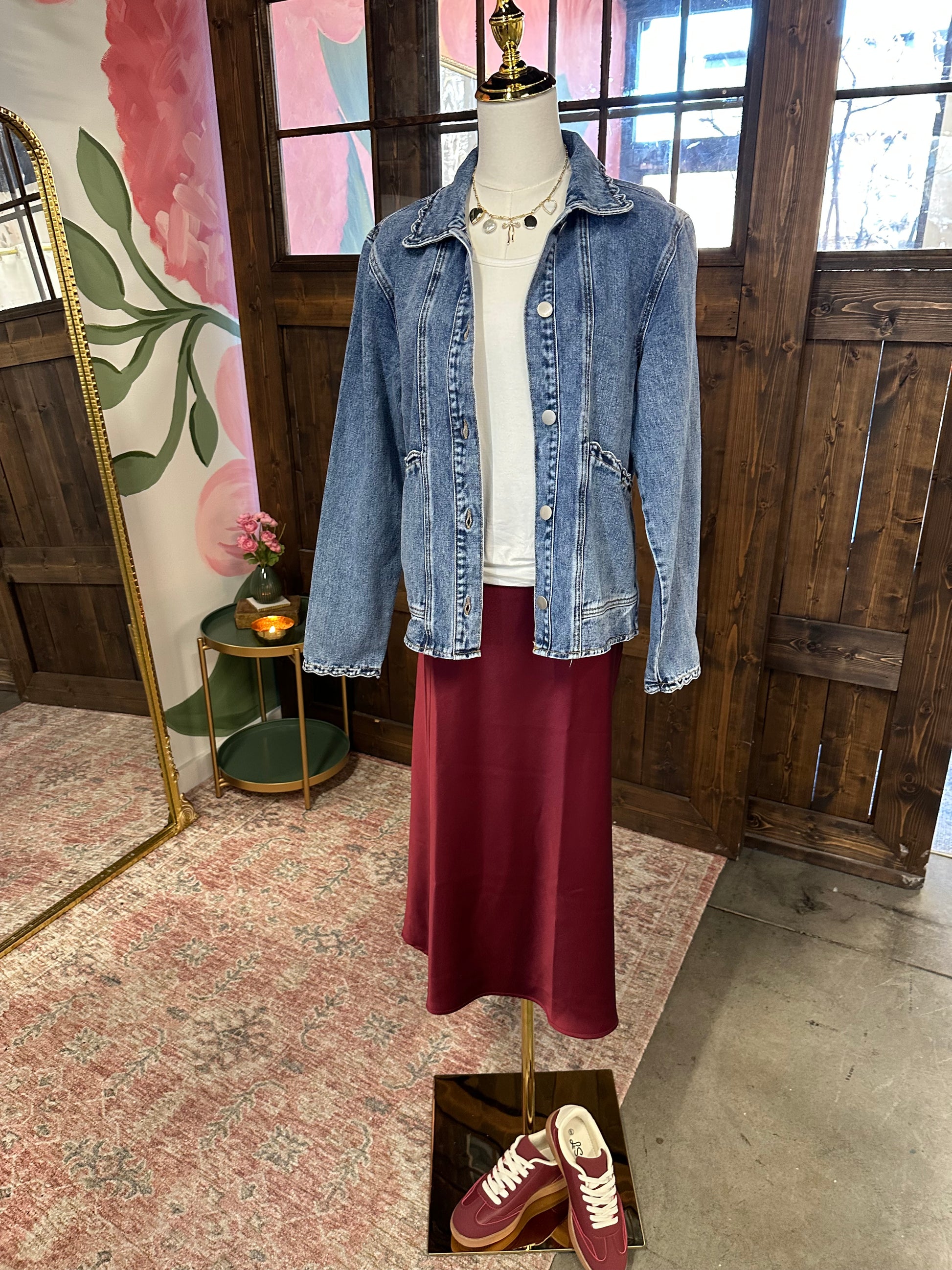 Dark Wash Scallop Trim Jean Jacket