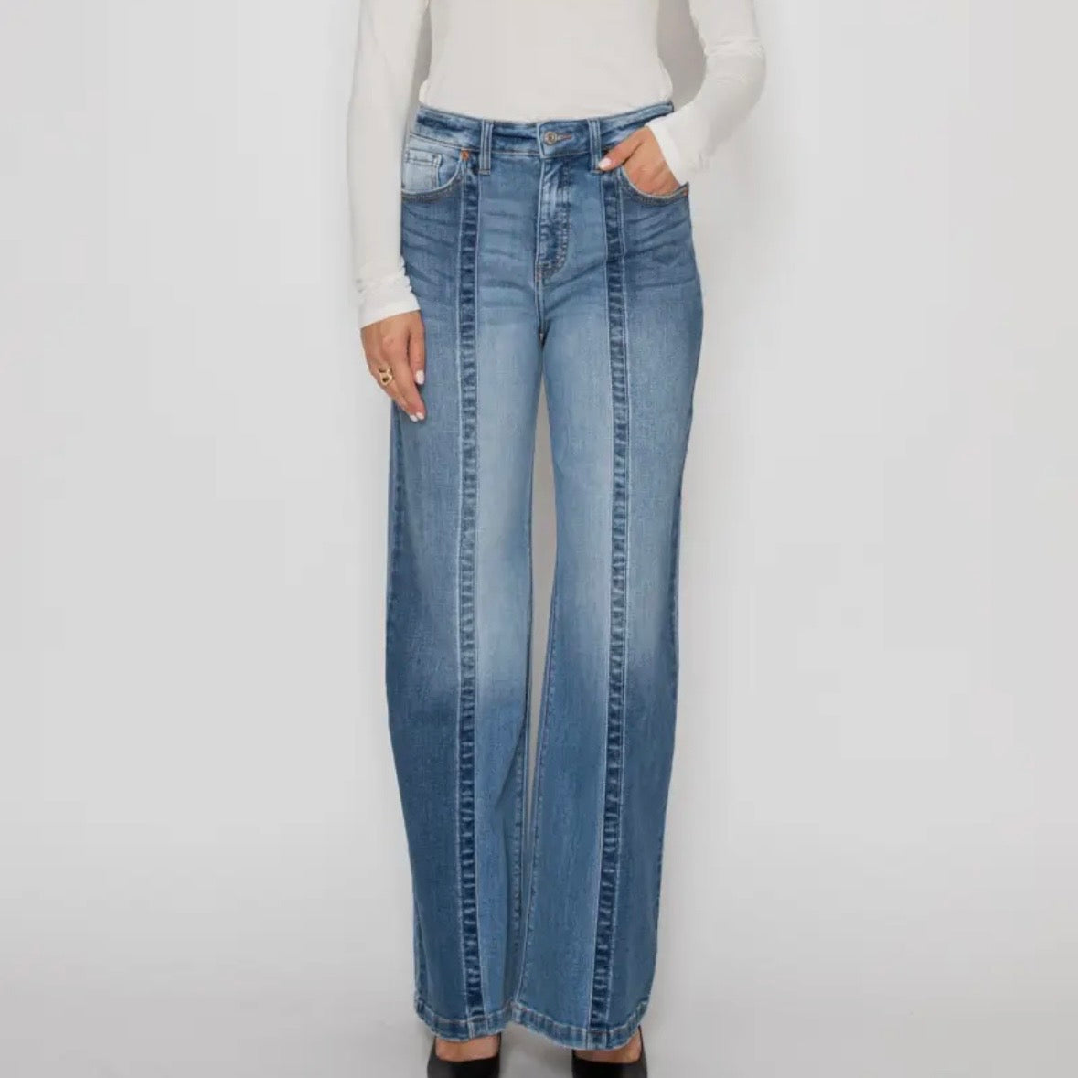 Achieve the perfect silhouette with our Eco Friendly Tummy Control High Rise Relaxed Flare Jeans. Designed for all-day confidence, these jeans provide structure and support, enhancing your curves in a sustainable and stylish way. The perfect blend of fashion and function.