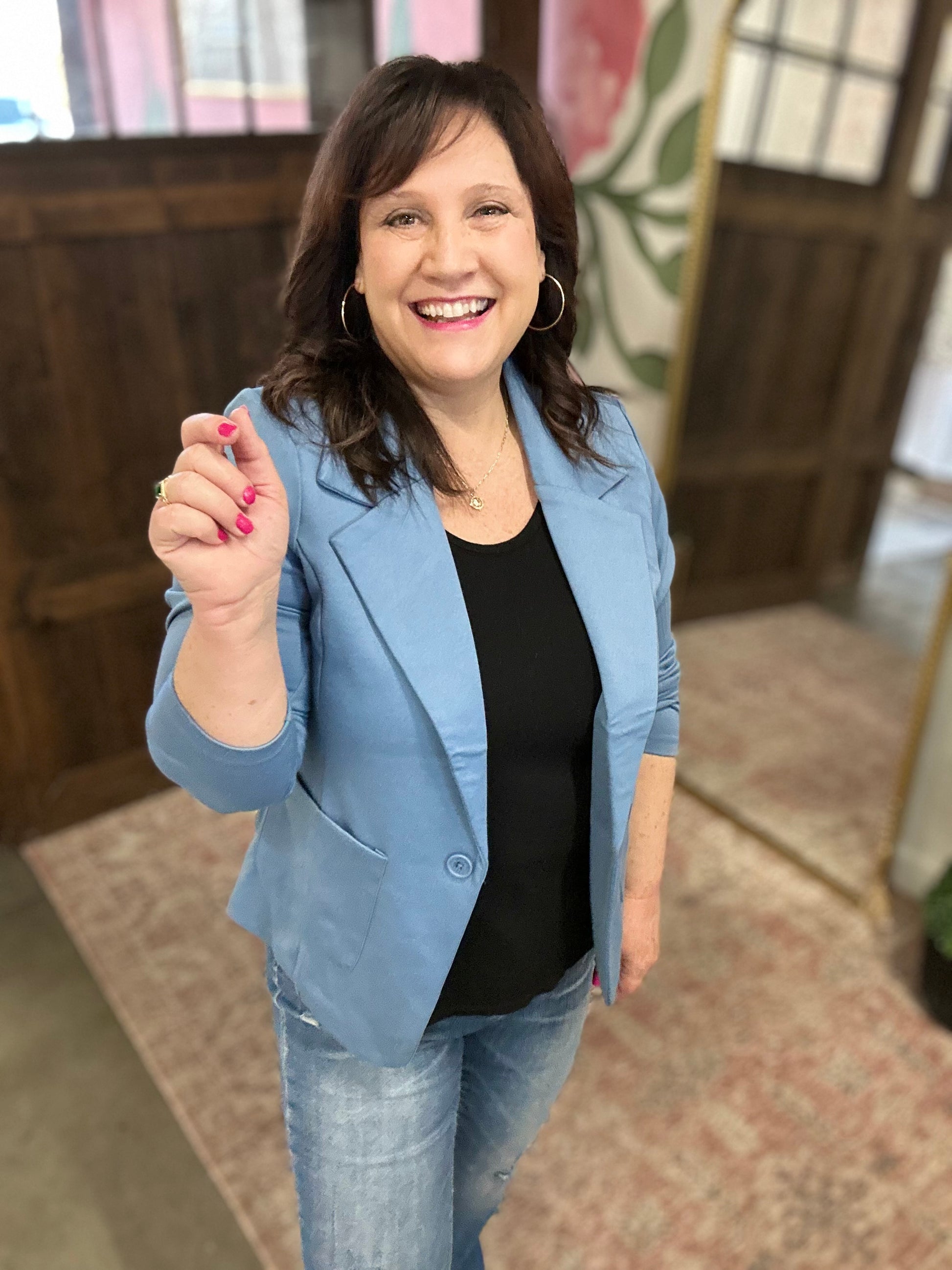 Light Blue Ponte Button Front Blazer